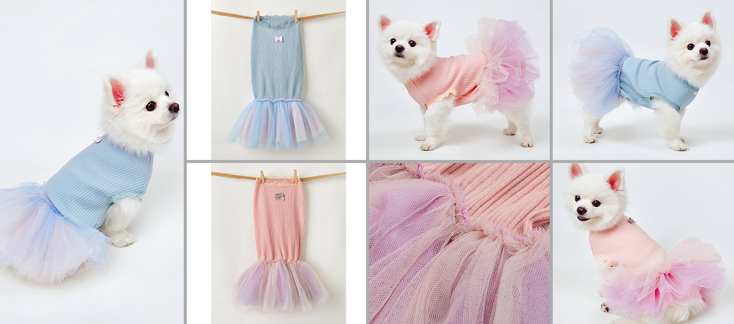 【NEW!】IsPet Pet Clothes - Threaded Vest Gradient Yarn Skirt One-Piece - Blue [5 sizes]