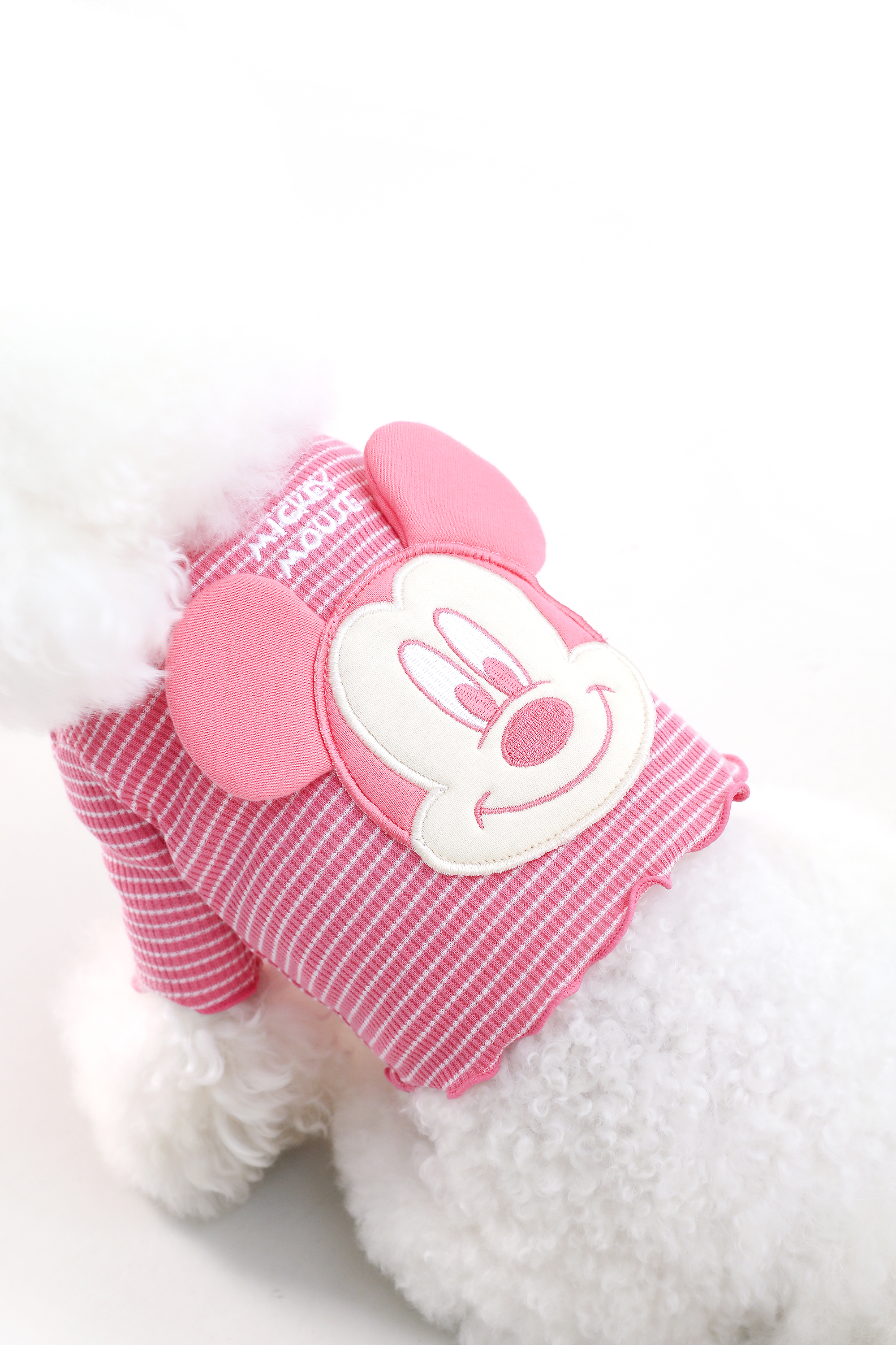 條紋面料的波列羅開衫附有米奇老鼠圖案的刺鏽