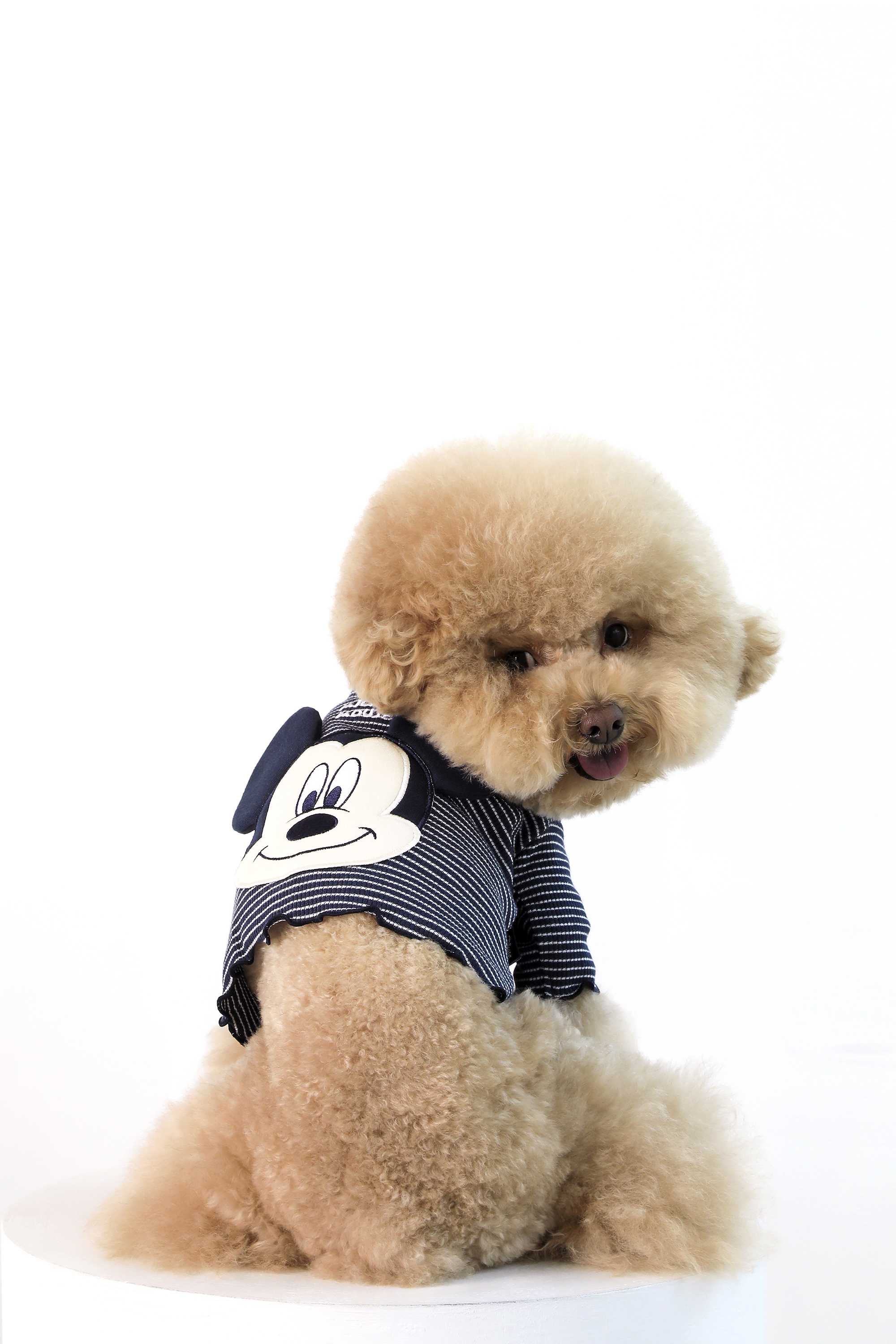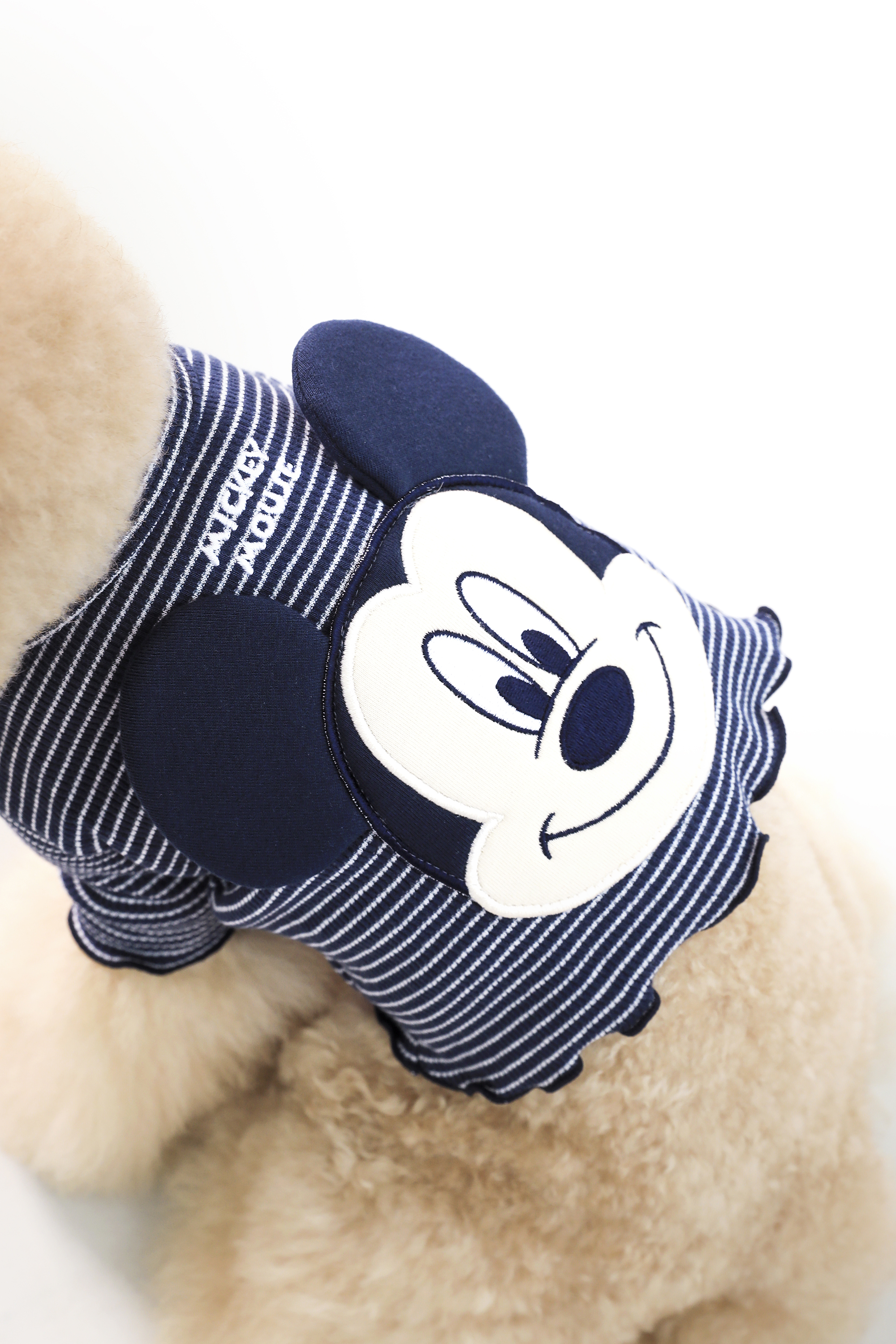 條紋面料的波列羅開衫附有米奇老鼠圖案的刺鏽