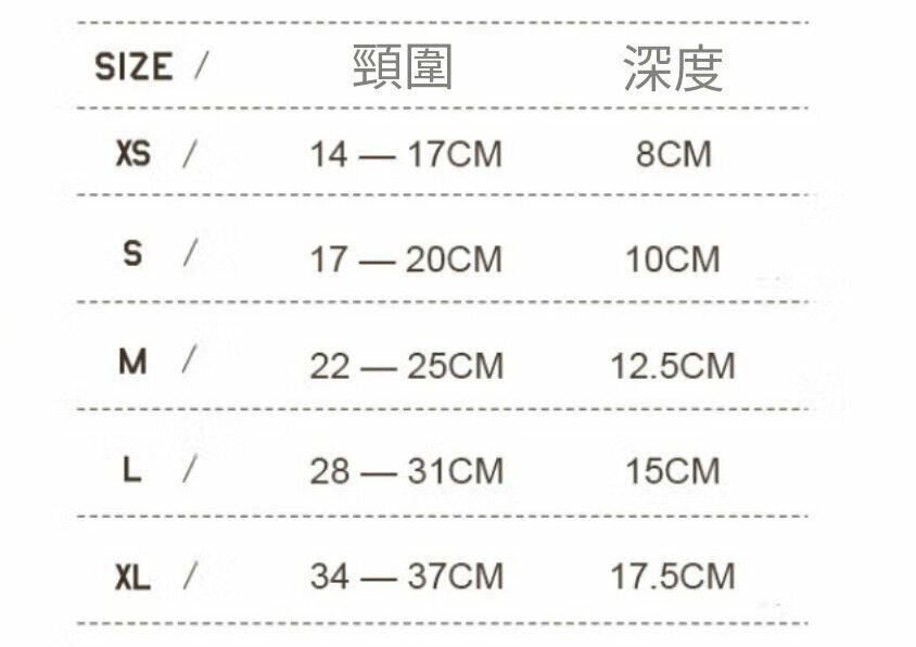 S:頸圍:17-20cm;深度:10cm